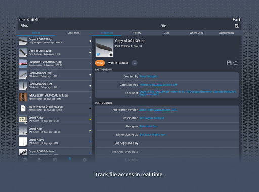 Autodesk® Vault for Android allows you to work with your design and engineering data on your mobile device. You can use the Vault mobile app to view 2D and 3D designs, check non-CAD files in and out, approve and sign documents, create and participate in change orders, perform QR, barcode, simple and extended data searches, and more. Supporting over 100 file formats, the Vault mobile app makes it easy to stay up to date on your projects and collaborate with others anytime, anywhere.