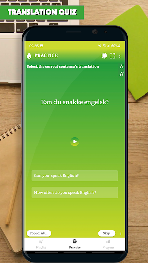 All the app's features are designed to help you learn to make Danish sentence and improve the main skills: Listening to a sentence, writing (making) a sentence correctly, speaking a sentence/a phrase correctly.