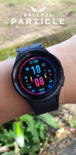 BALLOZI PARTICLE is a modern unique particle inspired watch face for Wear OS. It was first published in Tizen and improved in Wear OS. Works great on round smartwatches but not suitable for rectangular and square watches.