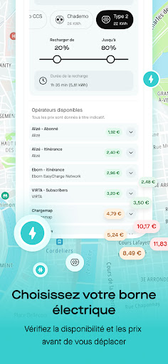 - Économies garanties : prix des péages, du carburant, des recharges et du stationnement affichés et comparés