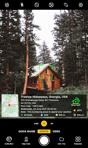 चाहे वह आपकी यात्रा की यादें हों या किसी विशेष स्थान पर आपकी यात्रा, जीपीएस मैप कैमरा फोटो स्टाम्प एप्लिकेशन के साथ, अपनी गैलरी तस्वीरों में डेटटाइम, मैप, अक्षांश और देशांतर, ऊंचाई, सटीक मौसम, चुंबकीय क्षेत्र, हवा और डिजिटल कंपास जोड़ें।