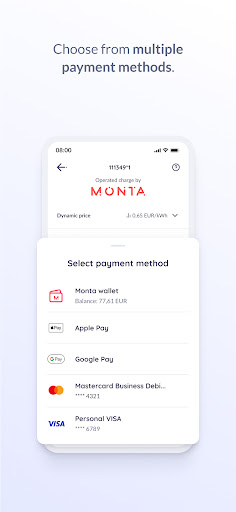 - Add funds to your Monta Wallet or simply pay via credit card, Apple Pay, Google Pay, or MobilePay/Vipps (Nordics)