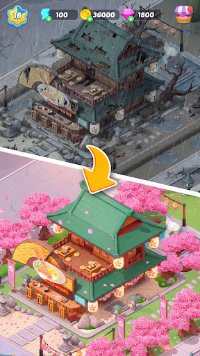 - 注文をこなして建物をアップグレードし、町を再建しよう!まずは自宅から!