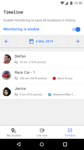 • Watch the chronology of your and your contacts' movement