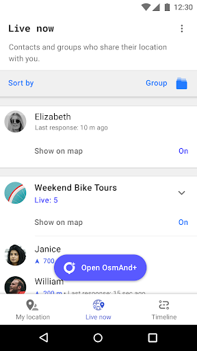 • View the location of contacts and groups in real time on the map in OsmAnd