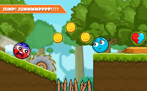 - Collect the missing halves of the heart: the blue ball will only collect the blue heart, similarly, the blue ball will only collect the red heart.