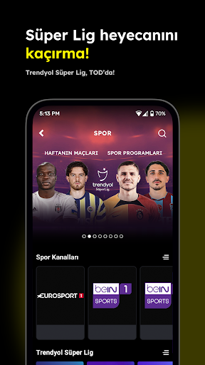 Nerede olursan ol, canlı spor heyecanı ve eğlence hep yanında. Trendyol Süper Lig, İngiltere Premier Ligi, Bundesliga, Fransa Ligue 1, Türkiye Sigorta Basketbol Süper Ligi ve çok daha fazlası canlı maç yayınları yüksek görüntü kalitesiyle TOD’da. İzlemek istediğin lige ait pakete aboneysen herhangi bir ek ücret ödemeden maçları canlı izleyebilirsin. Uygulamayı yüklemen ve üye girişi yapman yeterli.